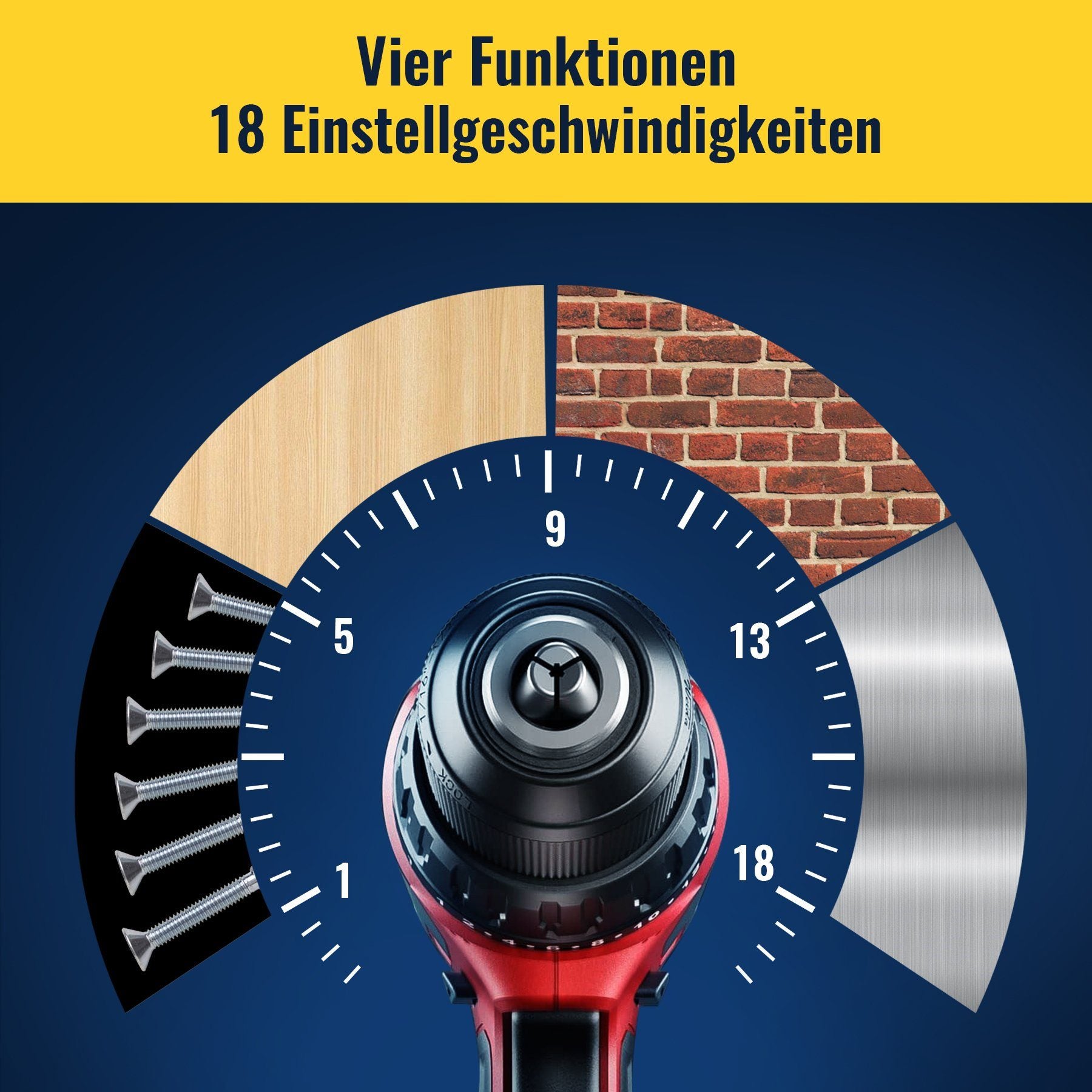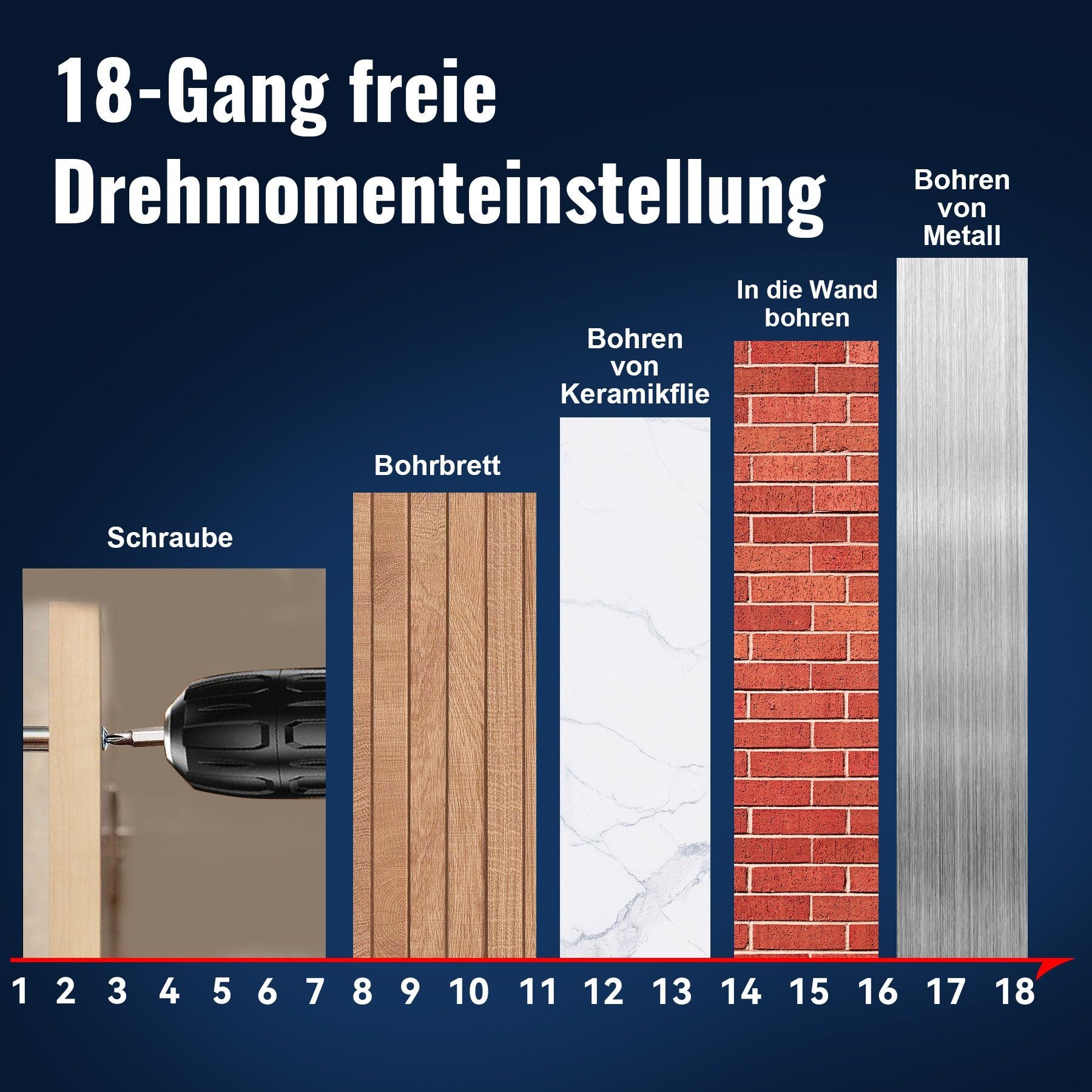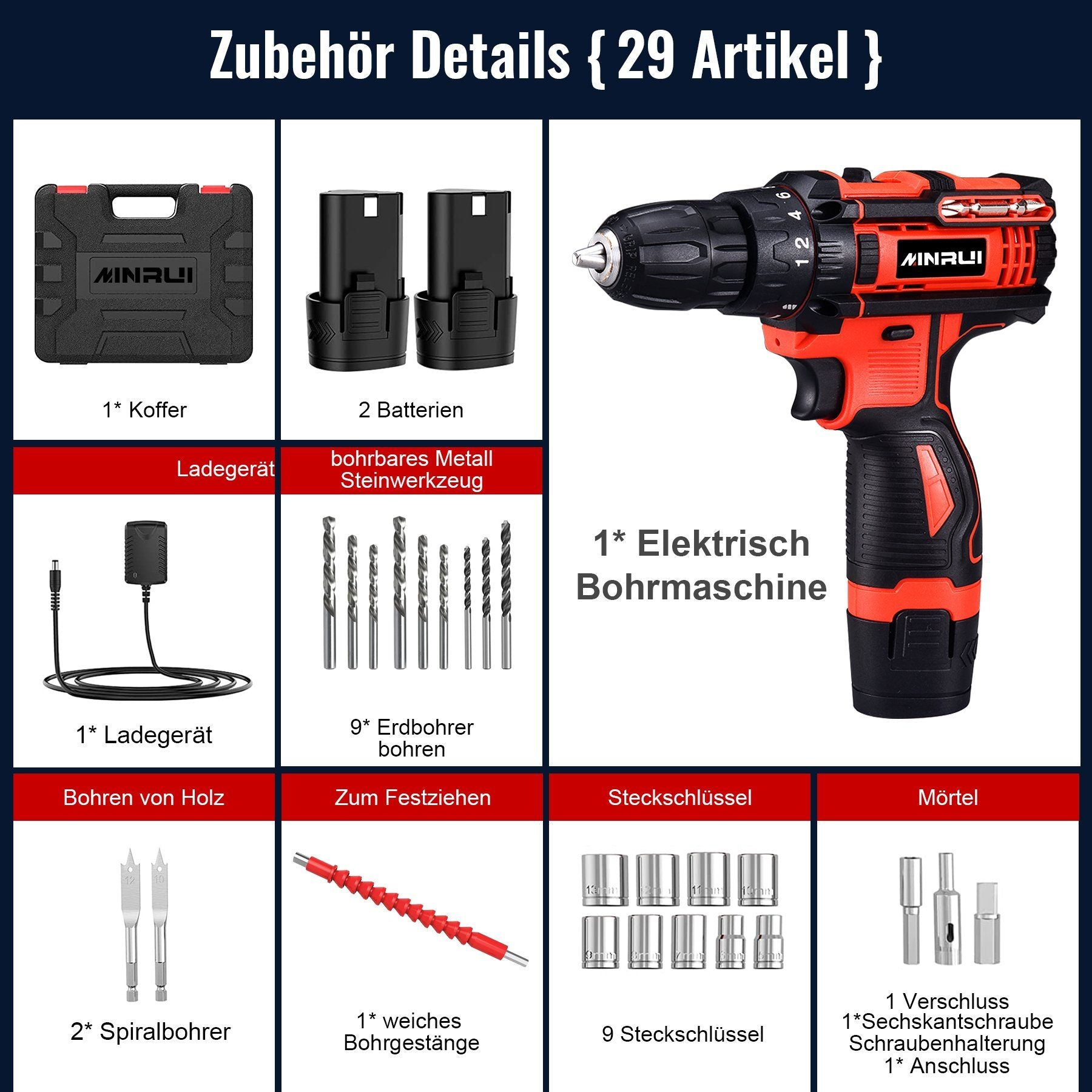 Akku-Bohrschrauber Akkuschrauber Li-Ion, 12 V 28Nm,18 Drehmomentstufen ausgestattet, 220 V