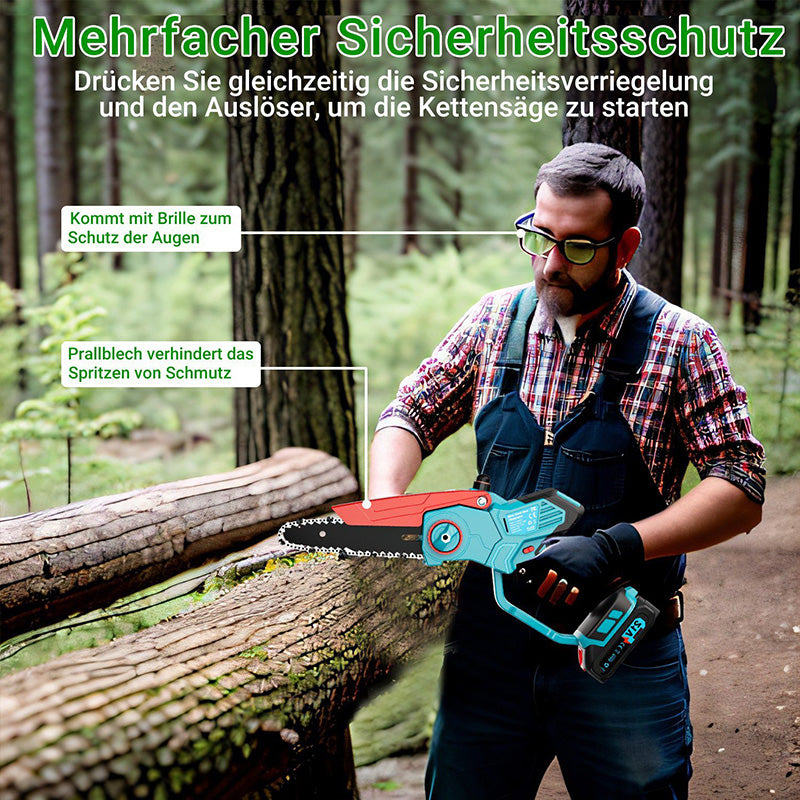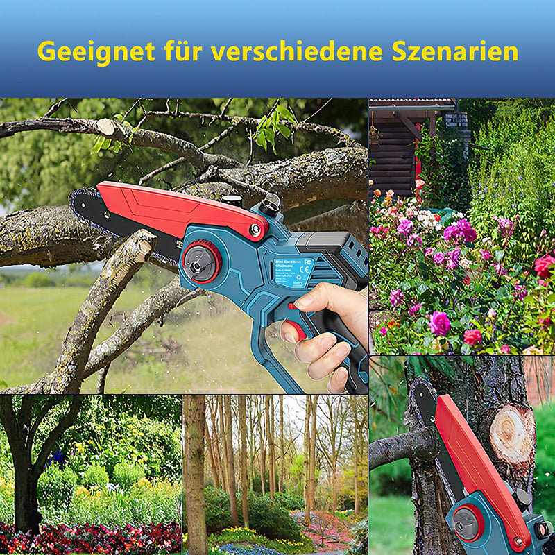 Akku-Kettensäge 6 Zoll Elektro-Kettensäge mit Akku, mit 2 Batterien, 2 Ketten und Ladegerät
