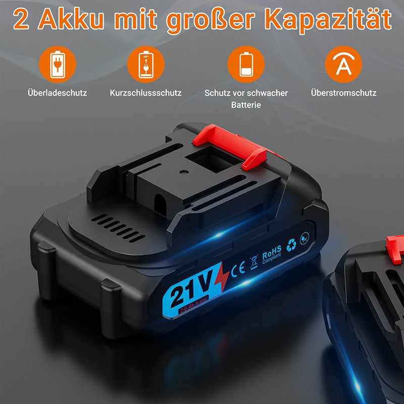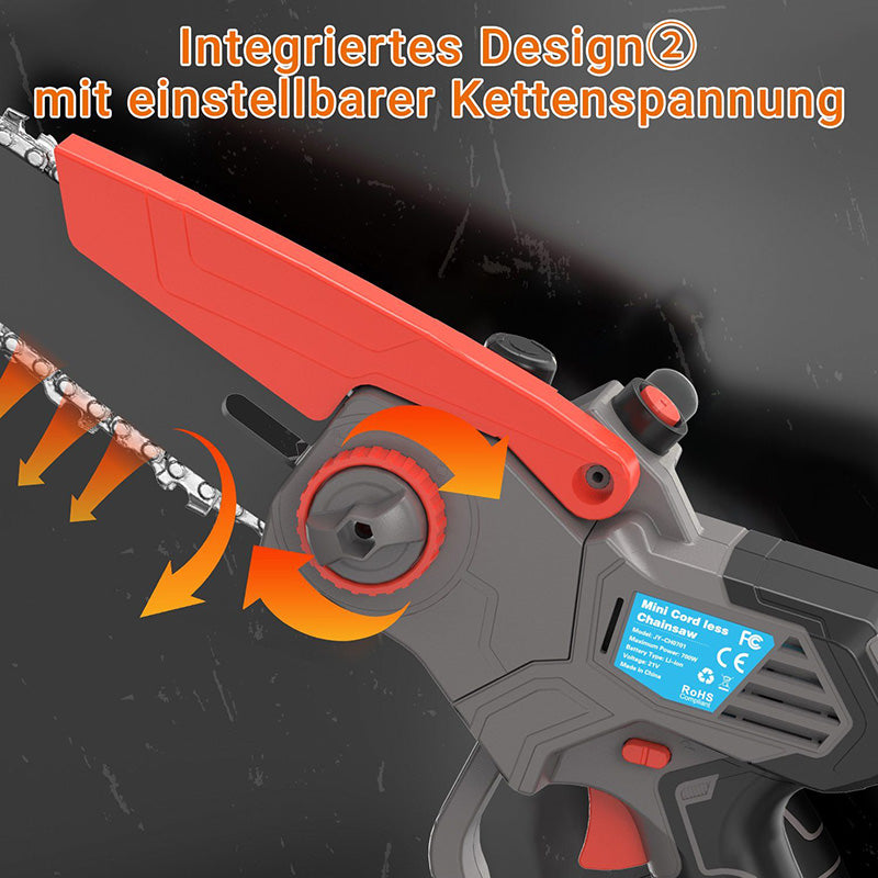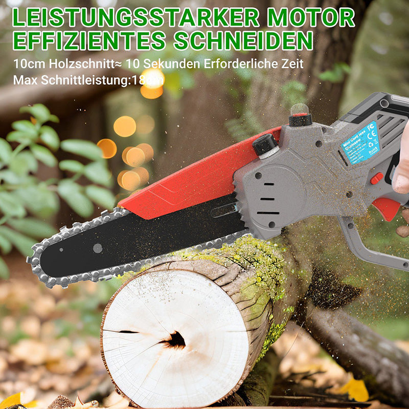Akku-Kettensäge 8 Zoll Elektro-Kettensäge mit Akku, mit 2 Batterien, 2 Ketten und Ladegerät