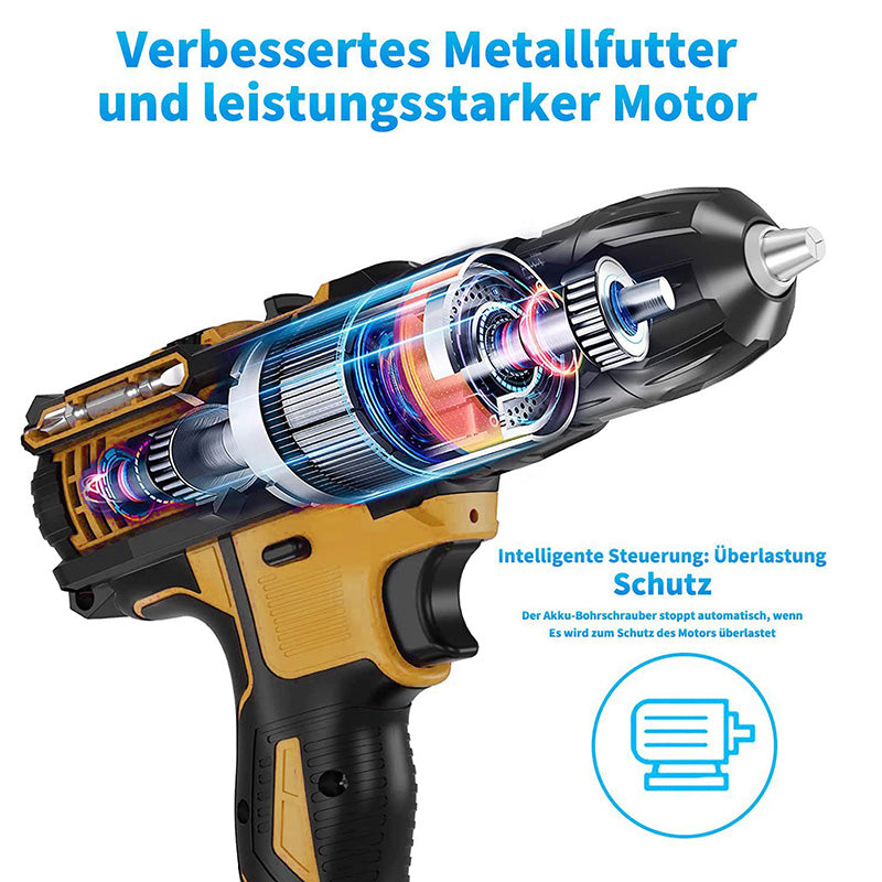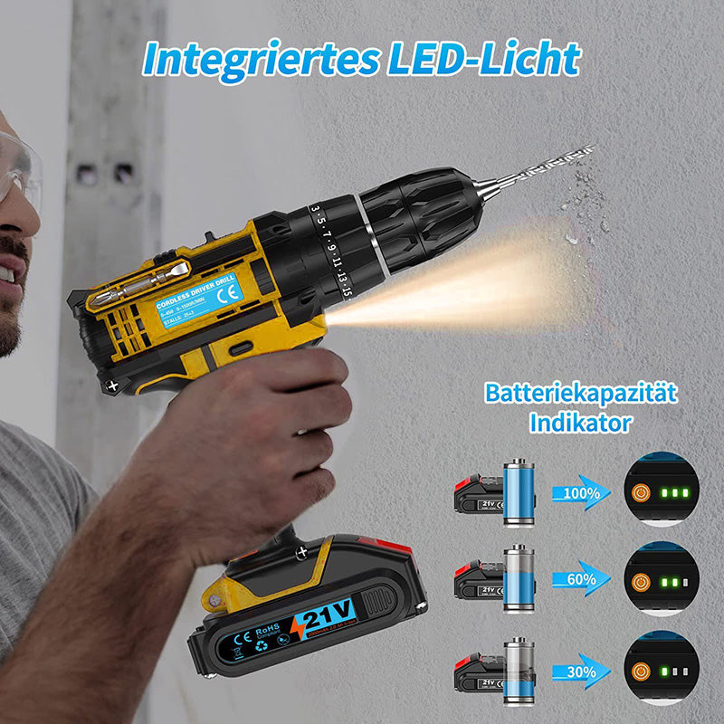 Akku-Schraubendreher Akkuschrauber Set,1200 U/min, 45 Nm, Drehmoment, 2-Gang
