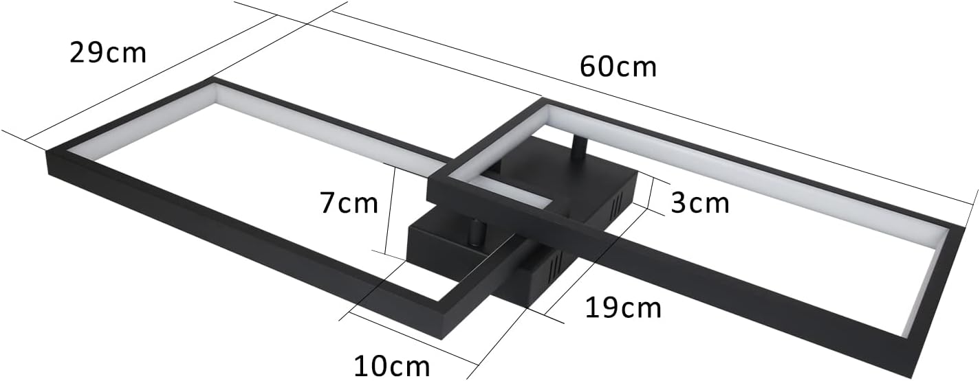 Augenschutz & Flimmerfrei: Die fortschrittliche LED-Beleuchtung ist frei von RF-Interferenzen und strahlt ein helles, weiches Licht aus, das Ihre Augen schützt. Der speziell behandelte Lampenschirm dämpft das Licht noch mehr. Der Farbwiedergabeindex der Deckenleuchte liegt bei >80, was eine klare Farbwiedergabe gewährleistet und die wahren Farben des Lebens wiederherstellt. Größe der Deckenleuchte: 60*29 * 7cm; Größe der Deckenplatte: 19*10*3cm; Spannung: 230V