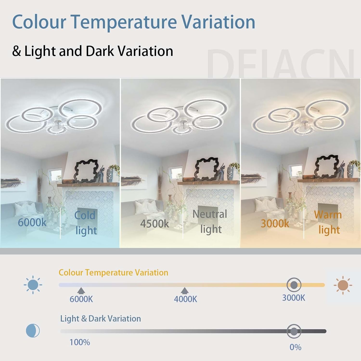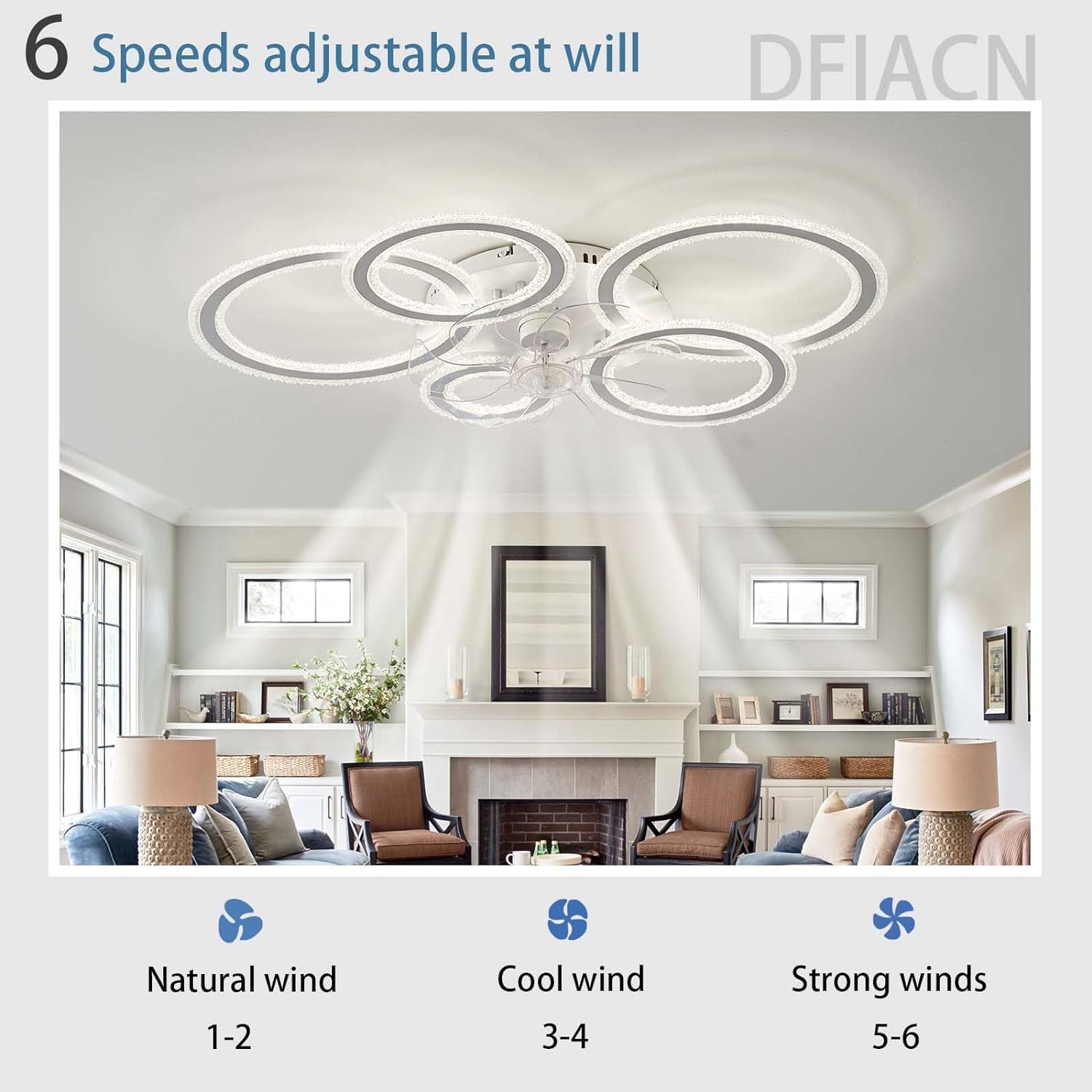 Lernen Sie die Vielseitigkeit kennen: Moderne Alexa Deckenleuchte mit Ventilator. Einstellbare 3 Farbtemperaturen (weißes Licht, neutrales Licht, warmes Licht), einstellbare Helligkeit von 5 % bis 100 %, 6-stufige Windgeschwindigkeit, Lüfter-Sleep-Timer, leiser Deckenventilator verwendet 100 % hochwertigen Kupfermotor, um Laufruhe und Geräuschentwicklung zu gewährleisten -freier Betrieb.