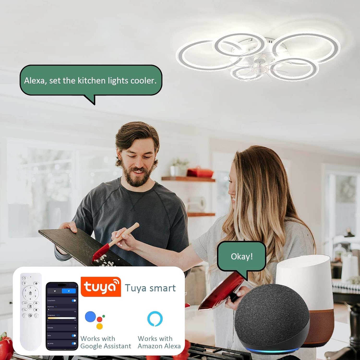 Sprache/App/Remote-Lüfter: Die intelligente WLAN-Deckenlampe mit Ventilator verfügt über eine neue Sprachsteuerungsfunktion zur Steuerung des Lüfterlichts über Alexa und Google Assistant. Sie können sagen: „Alexa, schalte den Lüfter/das Licht ein“. Sie können das Licht (kaltes Licht, neutrales Licht, warmes Licht), die Intensität (10 % – 100 %) und die Lüftergeschwindigkeit (6 Stufen) auch über die APP oder Fernbedienung und Stimme steuern und so Ihr Leben intelligenter machen!