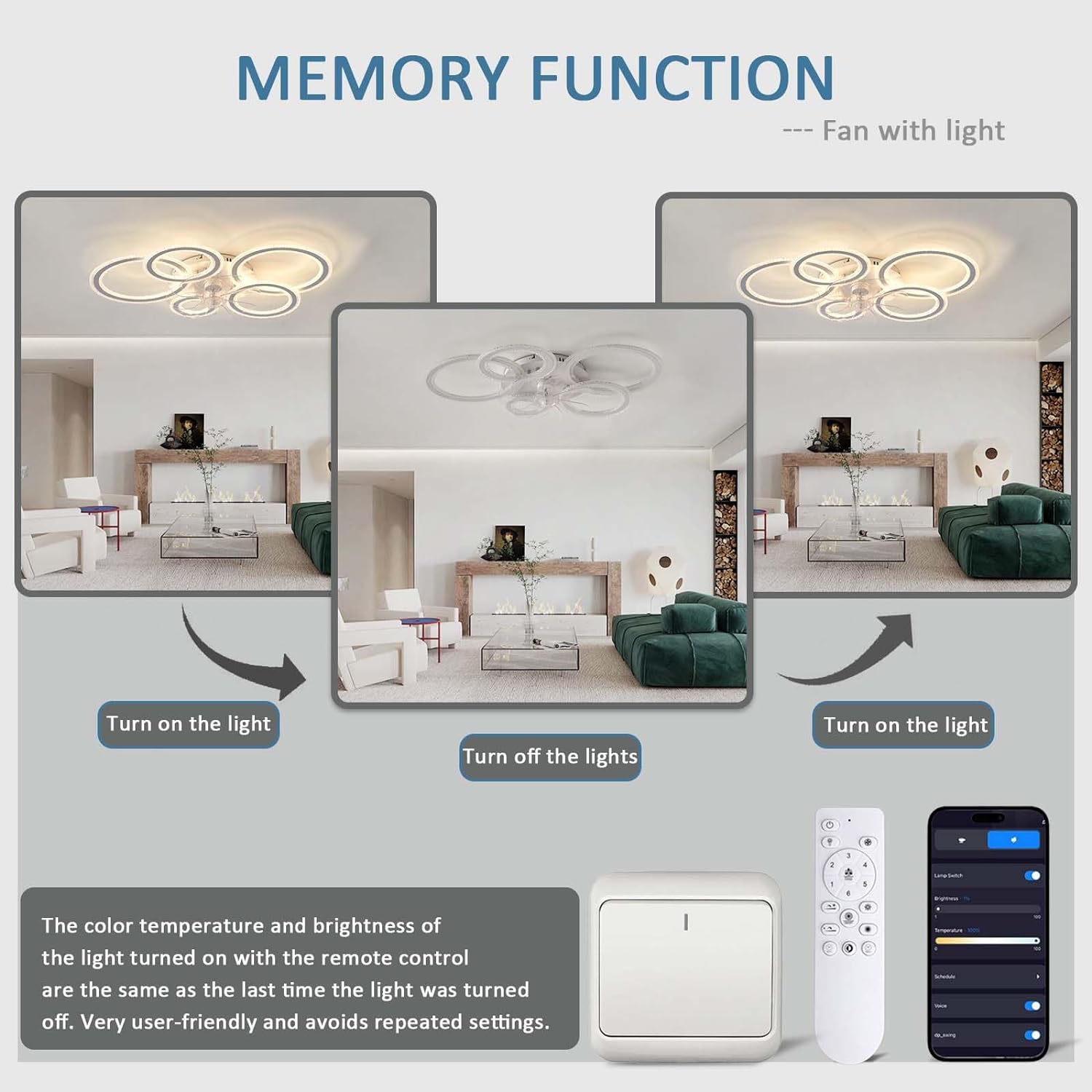 Deckenventilator mit Beleuchtung mit Fernbedienung APP Modern Dimmbar Speicherfunktion Smart Lampe