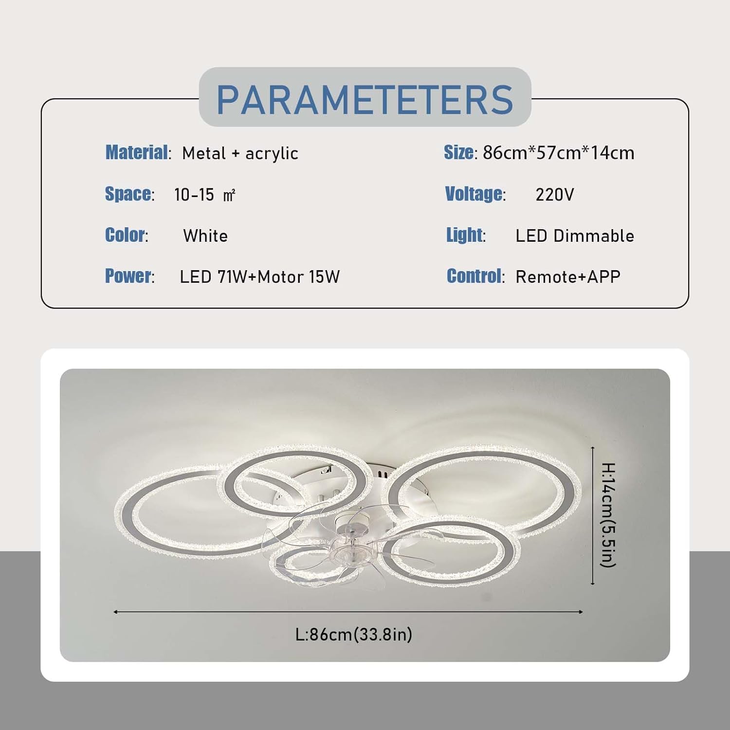 Eigenschaften: Alexa, Fernbedienung 2H-Timing, APP: 2/4/8H-Timing, Memory-Funktion, 6-Gang-Windgeschwindigkeit, dimmbar, in vier Jahreszeiten verfügbar