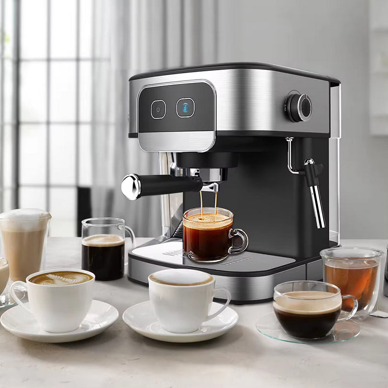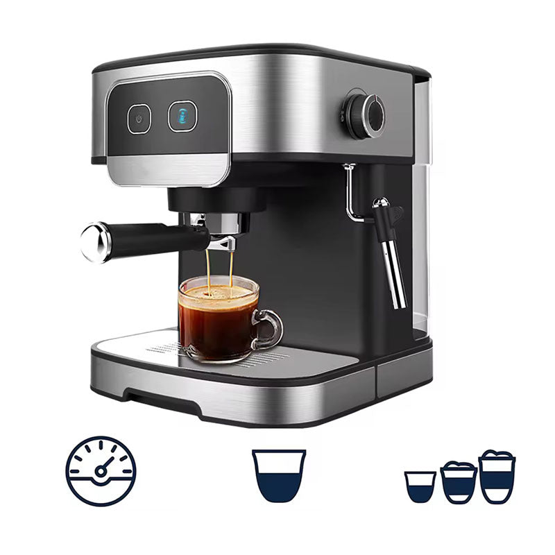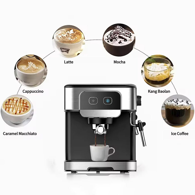 Die Kaffeemaschine verfügt über automatische und manuelle Kaffeeextraktionsmodi, die sowohl für Kaffeeanfänger als auch für erfahrene Kaffeeliebhaber geeignet sind. Eine 15-bar-Pumpe extrahiert maximalen Geschmack mit einer reichhaltigen, samtigen Crema, während Sie mit der Dampfdüse Milch für den perfekten Latte oder Flat White aufschäumen können.