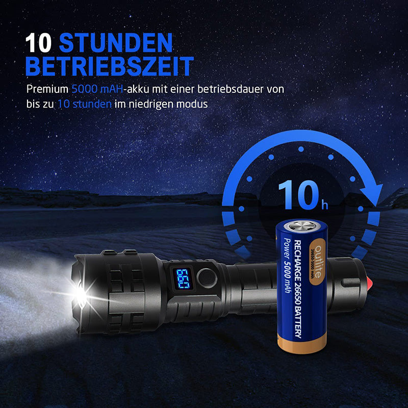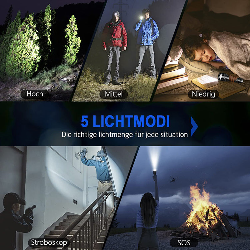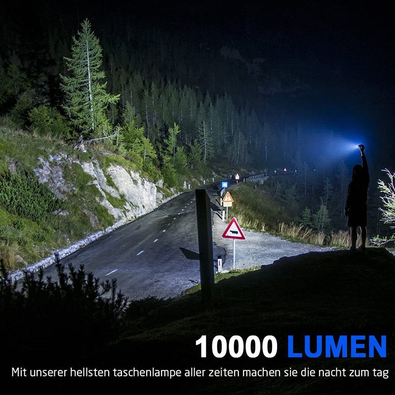 LED Taschenlampe USB Aufladbar Flashlight 10000 Lumen, 5 Lichtmodi Wasserdichte IP67 Akku Tragbarer